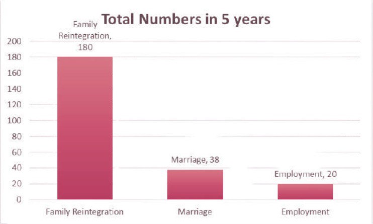 The family integration of children happens through the reception center. As such working with the family and the child altogether in order to create a space of friendship and reunion between them. The center also provides a service for mothers, where they are trained on small projects, for family integration, economic empowerment and maintaining basic livelihoods.