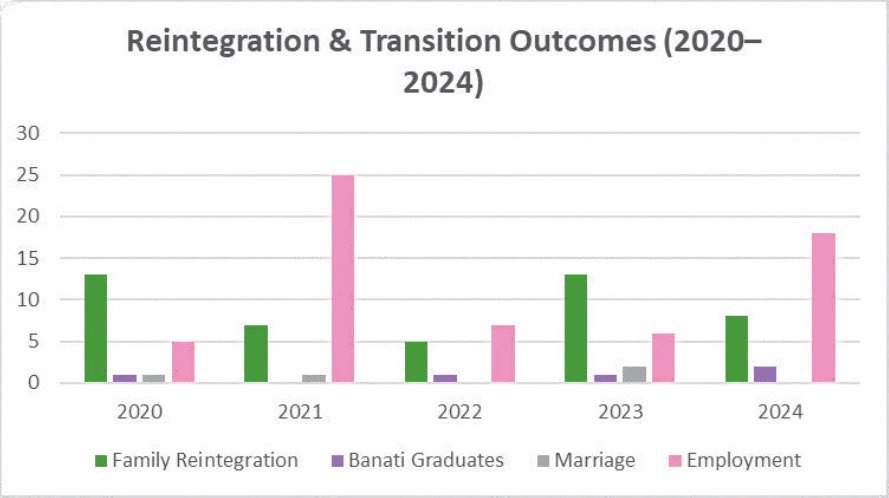 Banati's Residence : Providing Protection and Rehabilitation Banati's Residence offer protection and rehabilitation for children at risk or in street situations. Operating through two facilities, Banati provides a permanent residence situated on the 6th of October in Haram city, along with a temporary residence in Imbaba. Through its two Residence Banati provides permanent accommodation for children ages 7-18, food, clothes and medical care. Assuring a maximum protective environment for resident girls.